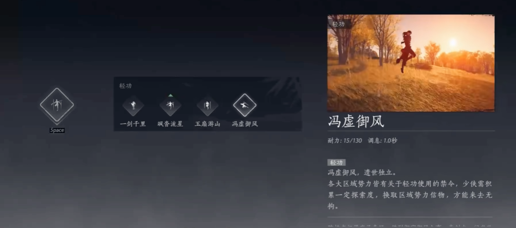 大轻功是一种重要的移动技能,可以让玩家在广阔的游戏世界中快速穿梭,提升探索效率。游戏中共有四种大轻功,分别是一剑千里、飒沓流星、玉扇游山和冯虚御风,它们虽然动作表现不同,但效用、耐力消耗和冷却时间基本一致。玩家可以通过多种途径获取这些大轻功,包括完成特定任务、参与活动以及提升区域探索度。