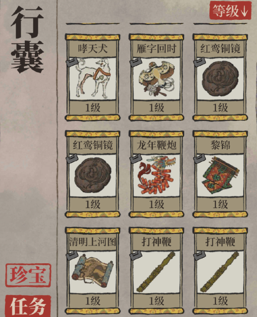 当安排张择端从事农牧或制作类工作时,珍宝的选择方案有所不同。用于农牧工作时,推荐使用哮天犬以获得61%的农牧加成,或用鸡缸杯提供57%的加成。用于制作工作时,则推荐使用缚龙索以获得64%的制作加成;其他替代选择包括青铜爵、镇河铁犀和鸡缸杯,它们提供的制作加成分别为60%、57%和50%,其中鸡缸杯因其在农牧和制作双方面的适用性而被一些攻略视为一个灵活的优选方案。这些搭配需要根据你当前紧缺的资源类型和所执行的农牧或制作任务来灵活调整。