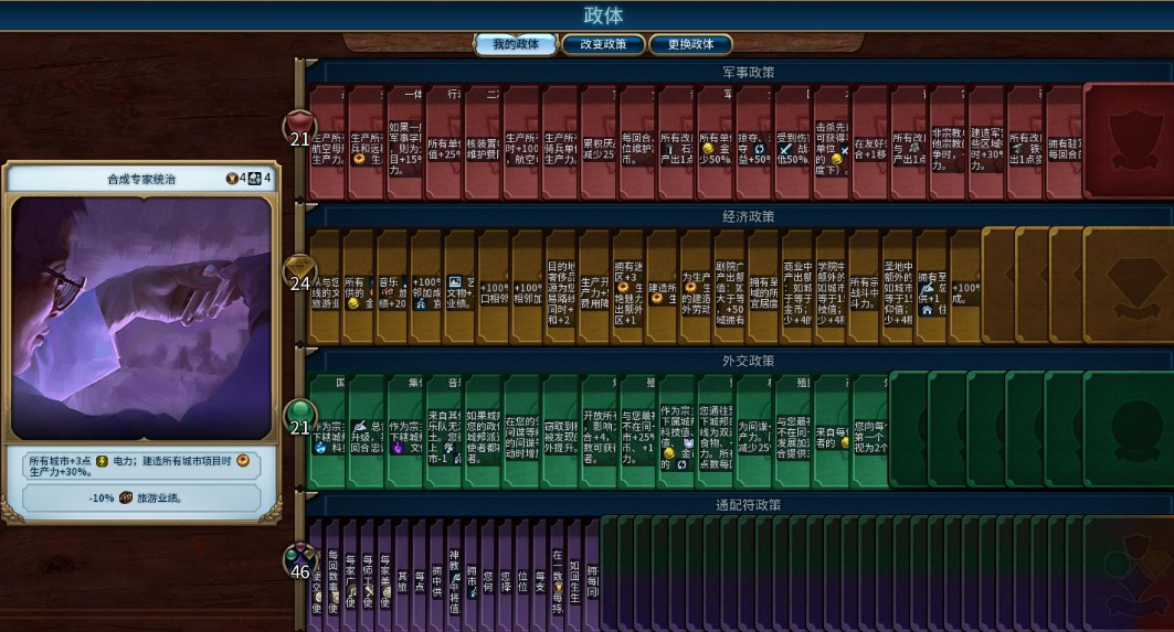 政体传承卡是一种特殊的通用政策卡,其效果是将你曾经使用的某个政体的首要特性保留下来,即使在你后续切换到更高级的政体后,依然可以享受该特性带来的增益。古典时代的寡头政体,其传承卡的效果是为所有陆地近战、抗骑兵和海军近战单位提供战斗力加成。这张卡并非在你切换到寡头政体时发放,而是必须在建造对应时代市政建筑时锁定寡头政体才能获得。这种机制意味着你需要为获取特定的强力传承卡进行前瞻性规划,而不是随意建造政府区建筑。