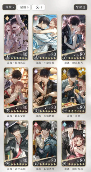 五星卡的羁绊加成与羁绊系统玩法深度绑定,羁绊等级提升后可解锁专属约会剧情、互动动作与家园特权,还能提升誓约技伤害与队伍属性加成,比如羁绊套装双1阶可增加10%誓约技充能,双2阶可减免5%受击伤害,大幅优化战斗体验。日常提升羁绊值时,可搭配五星卡养成同步进行,完成牵绊界面的专属任务、赠送对应男主喜好的礼物,在羁绊UP期集中养成,能让羁绊值增长效率翻倍,同时多收集同男主的五星卡,叠加羁绊加成,快速突破羁绊等级上限,解锁更多核心玩法与剧情内容。