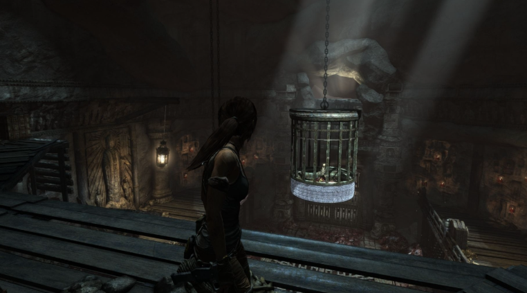 古墓丽影9寺庙大钟关卡的核心机制是利用风力与钟摆的物理互动破坏支撑结构。场景内有两扇可控制的通风窗,需分阶段开启:首先逆时针旋转机关打开左侧窗户,用绳索箭拉动钟摆,借助风力撞击右侧木柱;完成后关闭左侧窗户,开启右侧窗户,重复操作撞击左侧木柱;最后同时打开两扇窗户,拉动钟摆击碎顶部横梁,使大钟坠落砸穿地面。此过程需严格遵循顺序,过早开启双窗会导致风力抵消无法完成撞击。