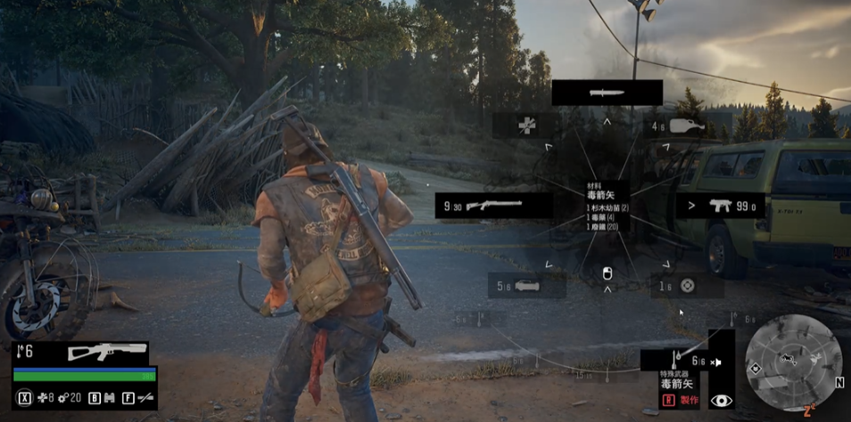 制作箭矢武器,首先需要掌握基础制作逻辑与材料收集。游戏中的制作系统无需寻找固定工作台,在战斗间隙按住L1键即可调出物品轮盘进行快速合成。制作箭矢的核心是资源收集,你需要专注于寻找两类材料:一是如木材(或称杉木幼苗)和废铁(或称金属零件)这类基础耗材,它们分布在森林、山区的树木上以及废弃车辆和零件中;二是如羽毛这类特殊材料,需要通过猎杀飞鸟或搜寻鸟巢来获得。请养成随手搜刮的习惯,并注意各种材料都有携带上限,超出部分应及时存入营地储物箱。