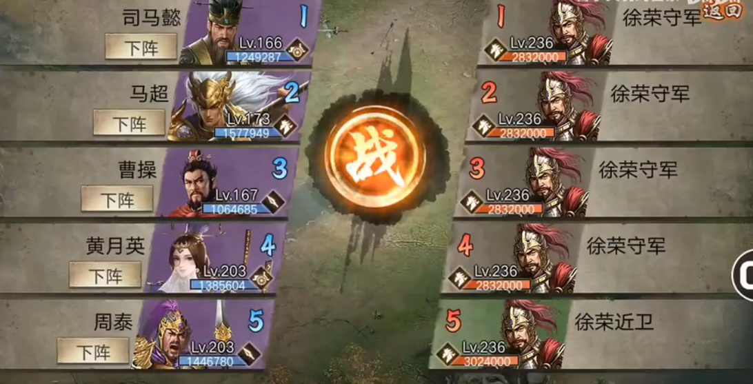 徐荣副本是攻城掠地中难度较高的水域地形关卡,其核心挑战在于徐荣的高格挡率与强力战法。要成功通关,需优先选择具有水域优势的武将,如夏侯惇和甘宁,搭配马超、许褚等紫色武将组成主力阵容。夏侯惇的强防属性可有效抵御程昱的爆发伤害,而甘宁的多次战法能