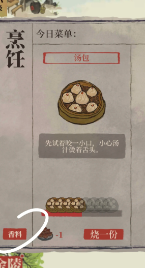 客栈烹饪需要首先进入客栈点击下方美食界面,消耗五个好评空碟即可挑战并解锁一道新菜品,成功制作新菜后通常能获得一个金画轴作为奖励。烹饪所需的香料需要通过满足客栈内食客的需求来获取,食客头上会显示所需资源,给予对应数量资源后,食客会随机回报给你