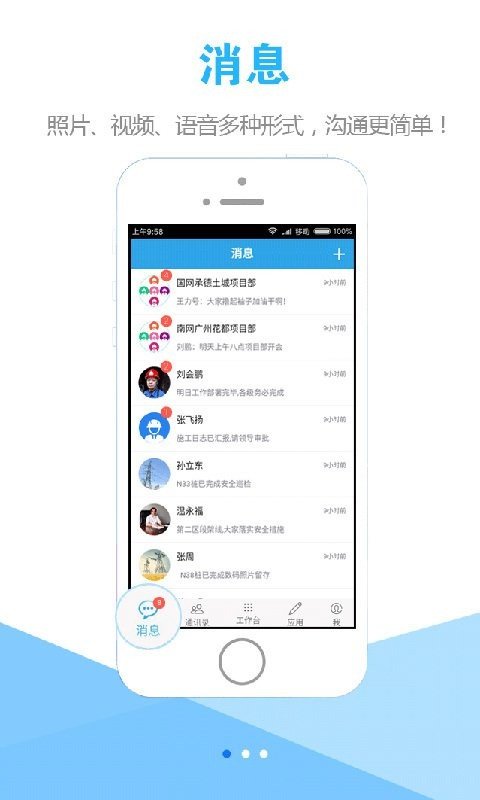 1.实时通讯系统:班组宝内置的即时通讯功能,支持文字、图像、视频等多种格式,确保项目组成员之间的沟通无障碍。